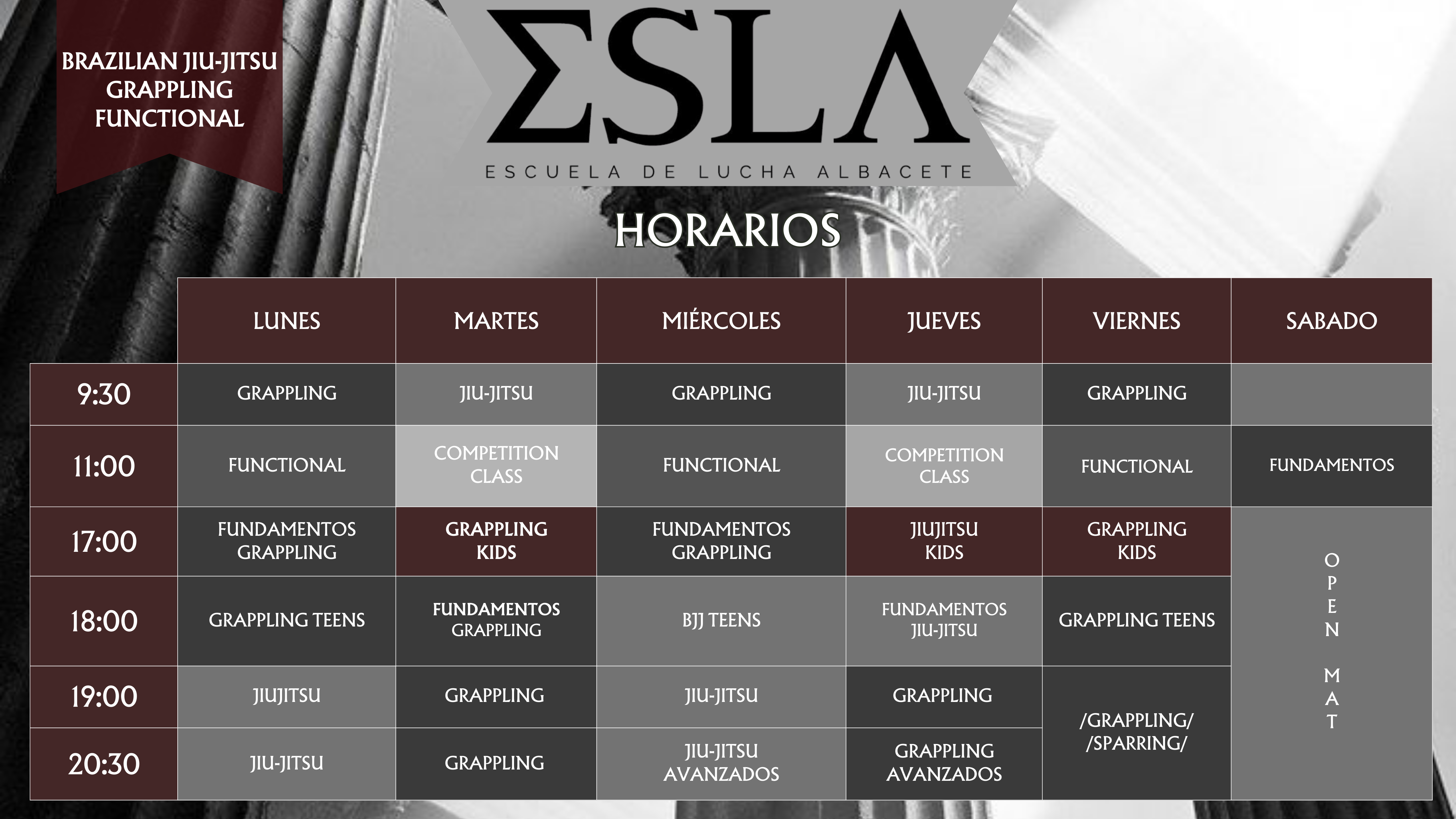 ESLA es una escuela de Brazilian Jiu-Jitsu, Grappling nacida en la ciudad de Albacete capital desde el 2010, afiliada a la delegación de lucha de Castilla-La Mancha. Está formada por profesores con gran experiencia y por competidores activos en las ligas más importantes del deporte, que junto a nuestro programa de entrenamiento TAMO ofrecen al alumno una enseñanza de primer nivel en todas las disciplinas a través de un sistema esquematizado en esta plataforma digital.